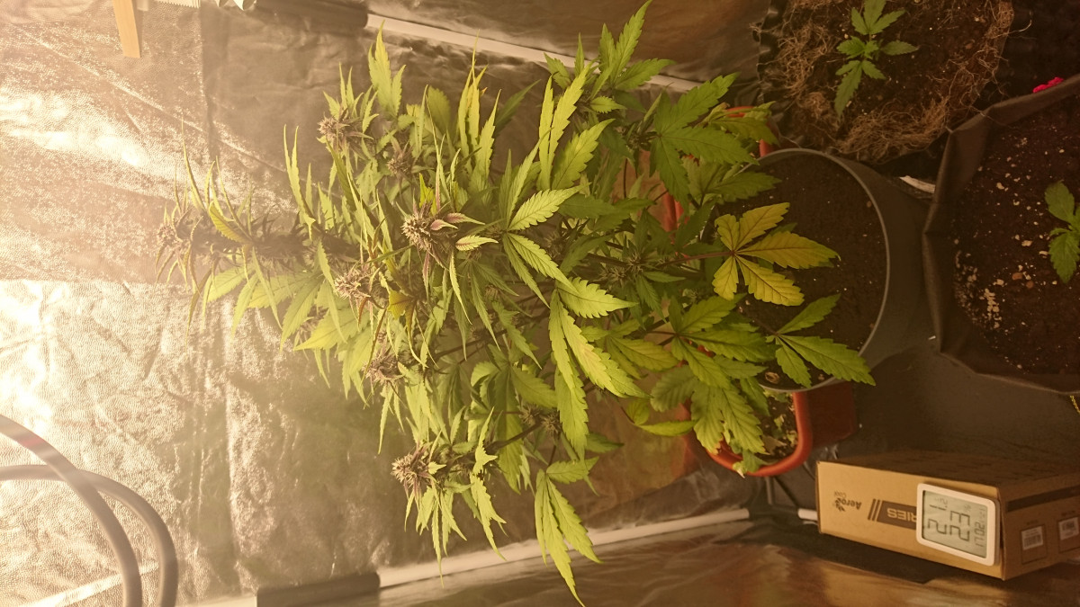 Растет отлично. Пережила избыток освещения, сухой воздух и жару за 30 градусов. Думал все, загнется. Lst тренировка. Постриг от желтизны и ничего - уже 30й день цветëт и все очень даже неплохо.
