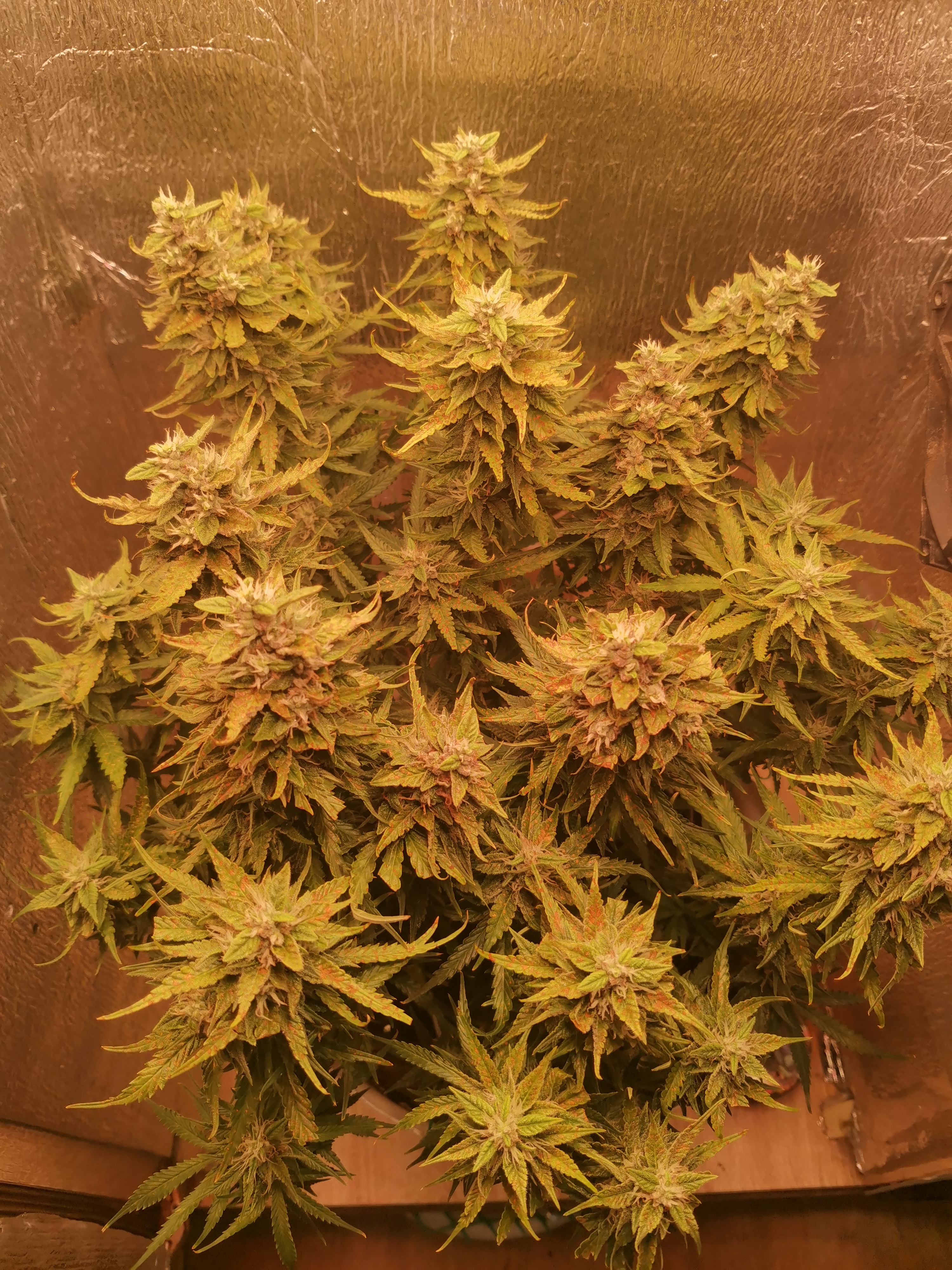 Живучесть сорта поражает! Впервые заказал, впервые посадил, всё делал по указкам из статей разных. Но, как не предупреждали мудрецы, таки залил растишку прямо сразу, как только высадил проросшее семечко. Залил наглухо! Плюс к этому, сначала был совсем слабый свет. Пять LED лампочек по 10ВТ каждая. И они были слишком высоко от растишки. В общем тупил по-полной. Через пару недель купил, поставил отличный свет! LED лампа полного спектра 150ВТ. С этого момента растишка поперла! Стала куститься и тянуться вверх. Дальше моя деятельность заключалась только в том, чтобы утром полить. Свет на таймере, сам вклвыкл. Да, забыл сказать, что растёт в боксе. Сегодня растихе 11 недель. Снимать пока не планирую. Стигмы побурели на 30%. Шишки еще растут. Куст ростом 100см. Неделю назад не удержался, срезал одну макушку небольшую. Описать эффект не смогу, но учитывая то, что растиха еще совсем зеленая, я просто ох*ел! На счет заказа семян, доставки - всё, как у всех. Заказал, доставили за 2 дня, всё круто! А! И еще! Растиха без каких либо подкормок. Сама по себе растёт, вообще не лезу. Не рискнул в первый раз с удобрениями заморачиваться. И еще!!! Она не пахнет! За всё время 2-3 раза были дни, когда источала плотный аромат на всю комнату, и всё. Ни сейчас, ни вообще по мере роста, запаха нет). Засуну нос в бокс, нюхаю-нюхаю, ни хрена! В общем еще недельку подожду, хочу жииирные макухи!) И, да! Она красотка!)